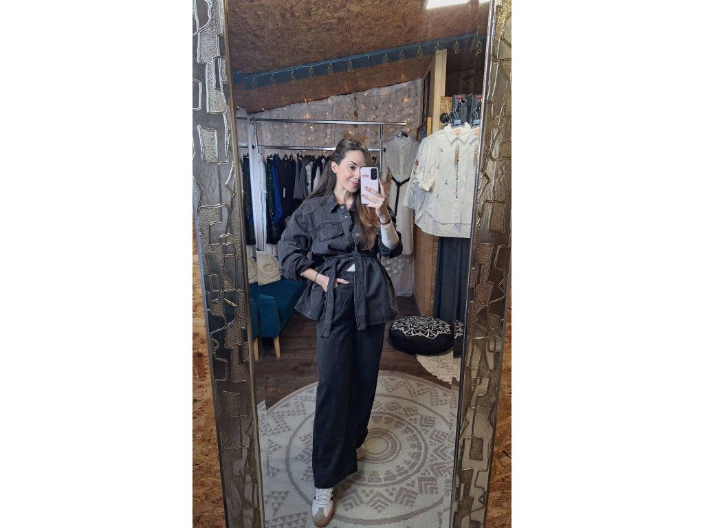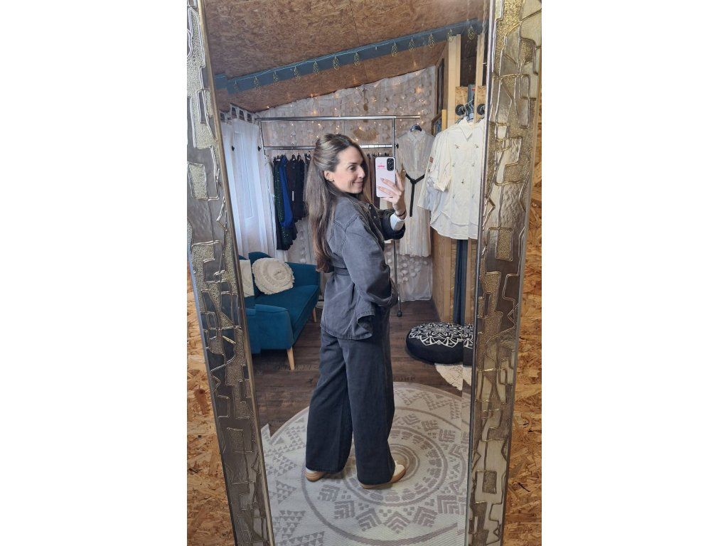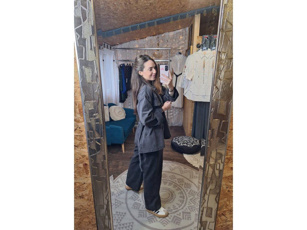 Kalhoty mají cvok a vzadu gumu v pase, mají kapsy