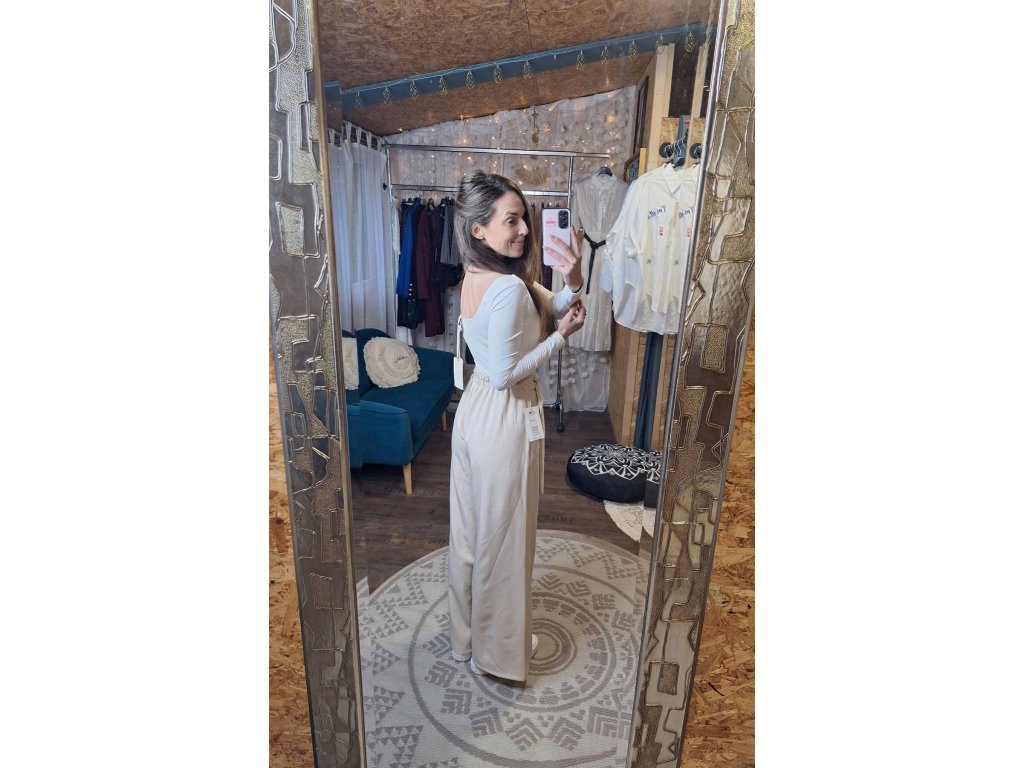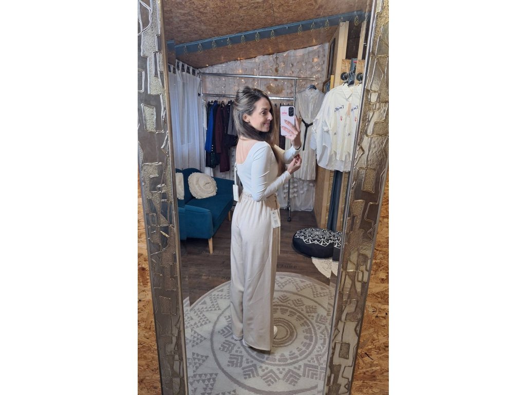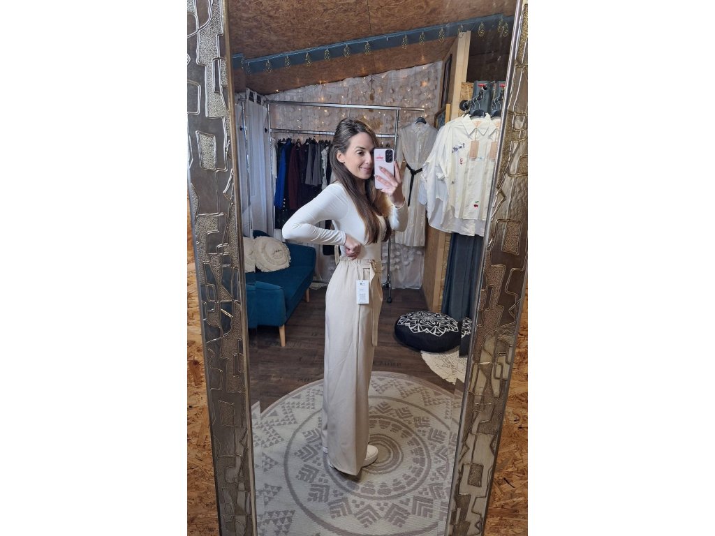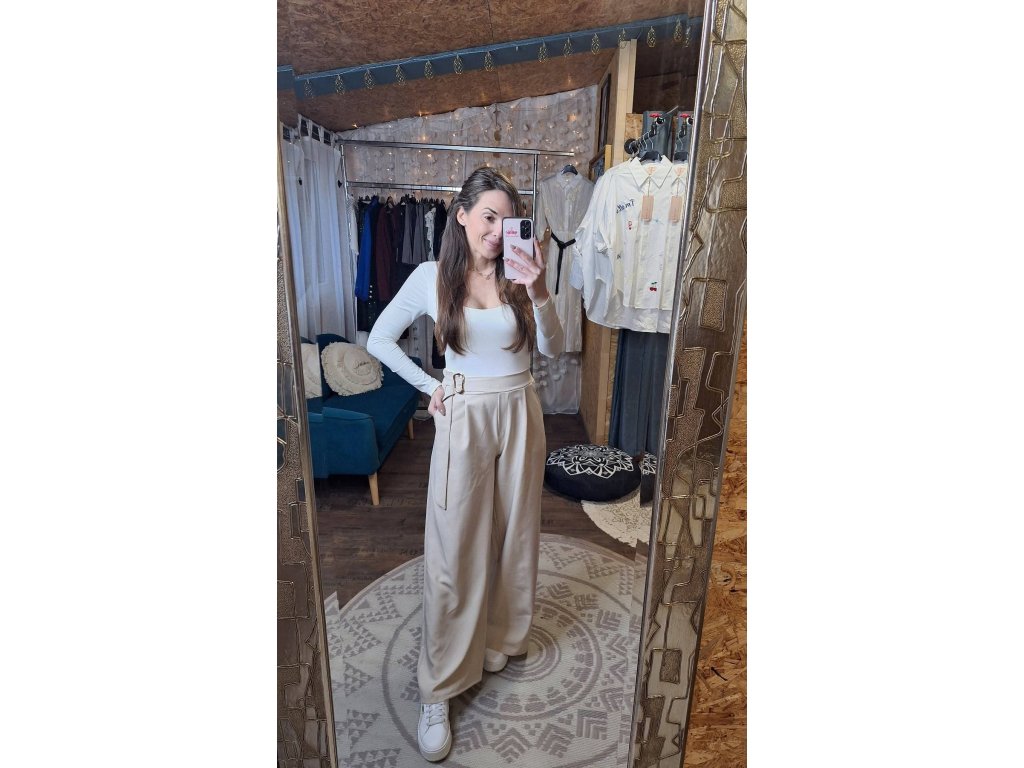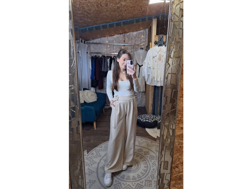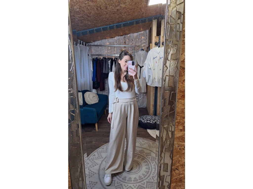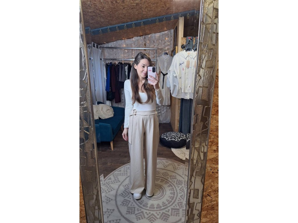 Kalhoty béžové s ozdobnou sponou 🤍