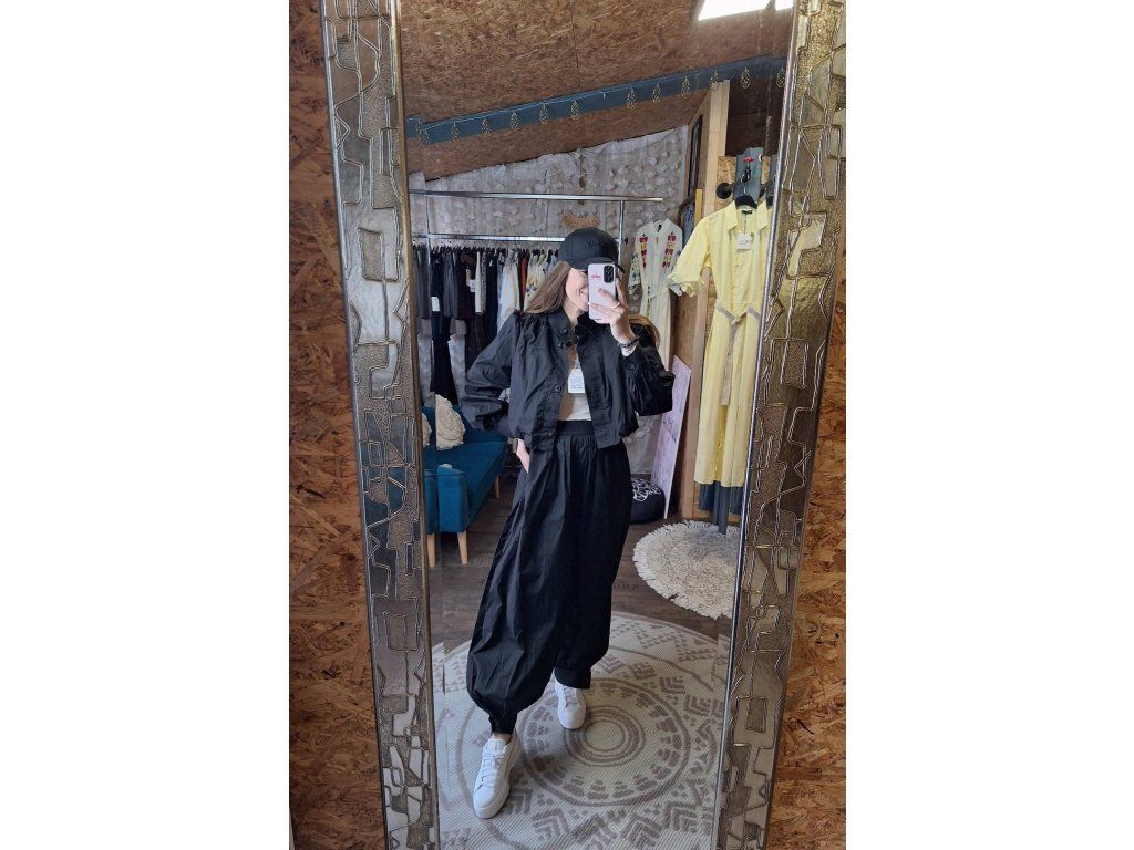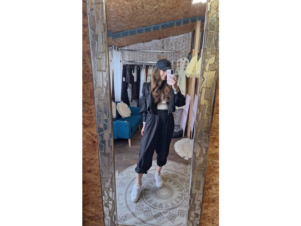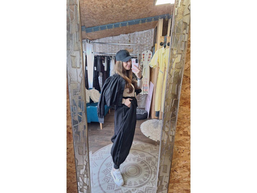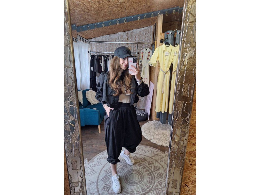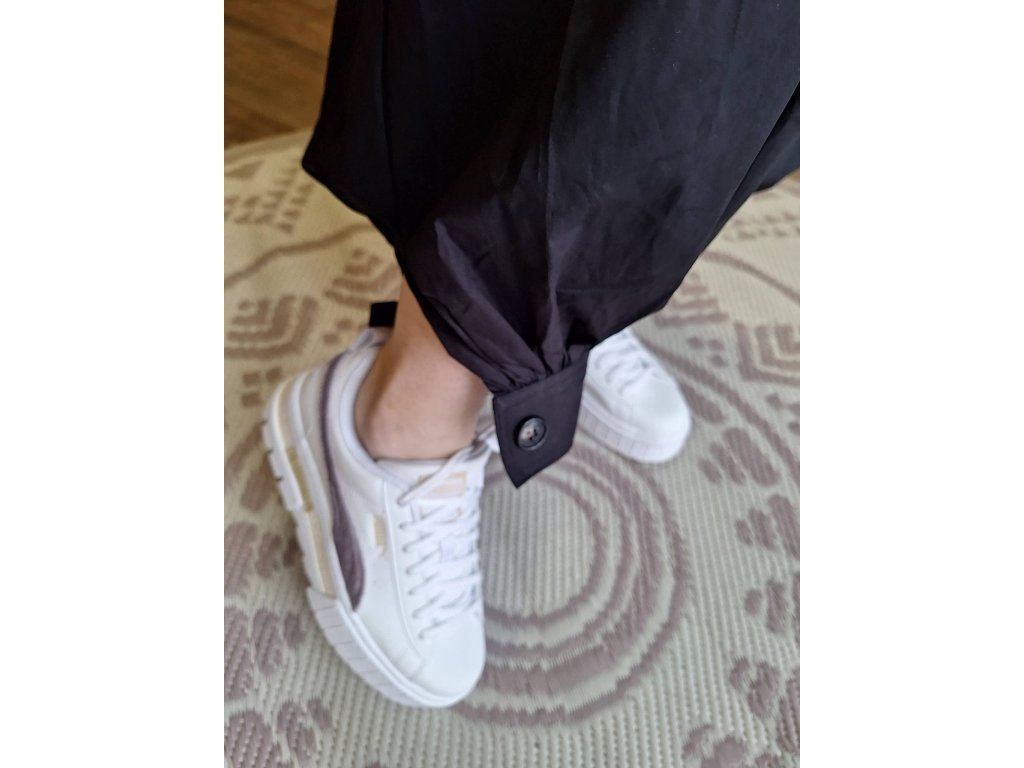 Kalhoty jsou zakončené manžetou s knoflíkem