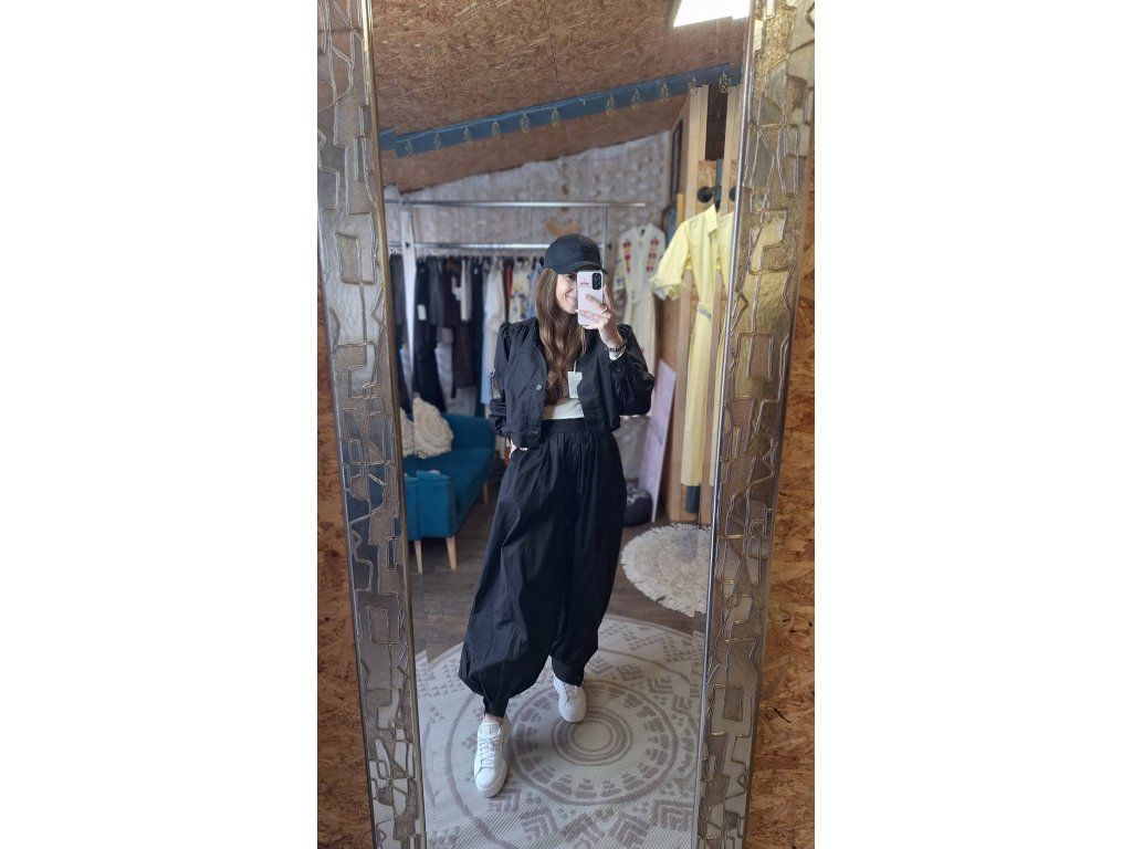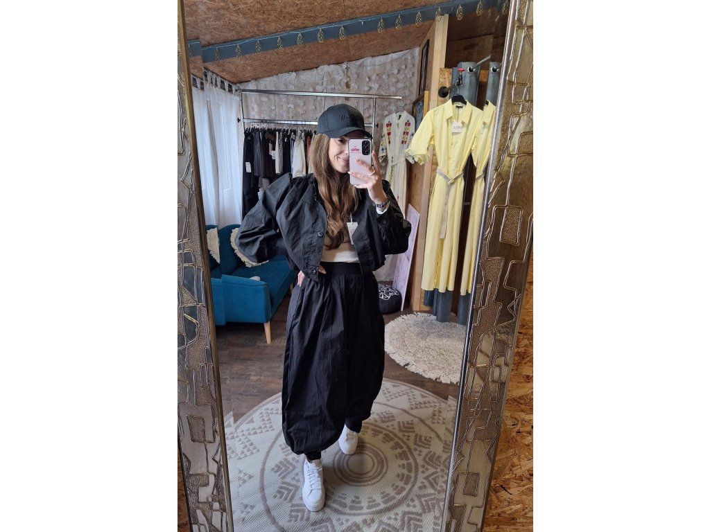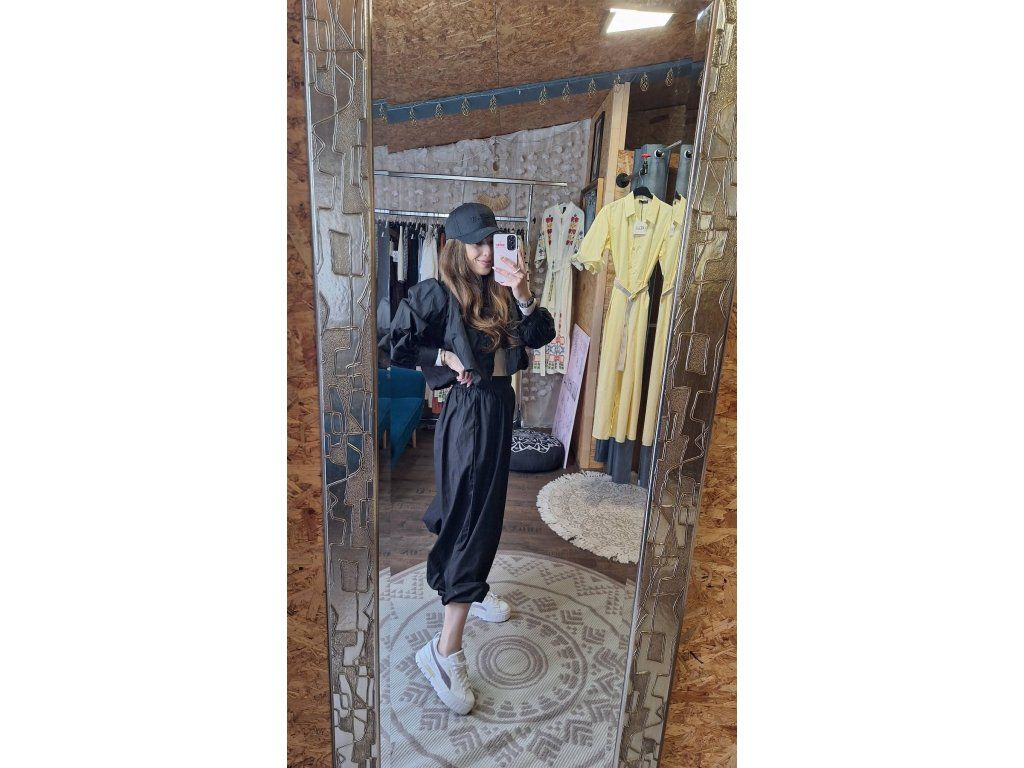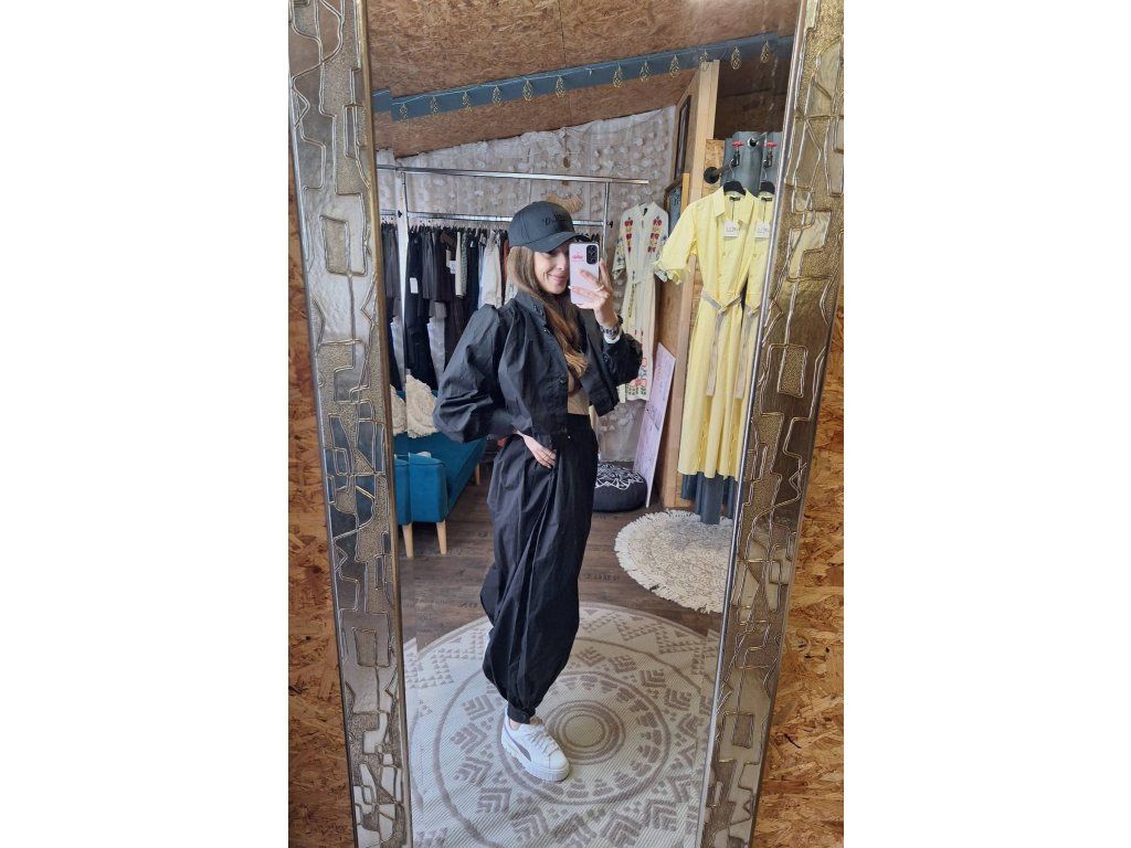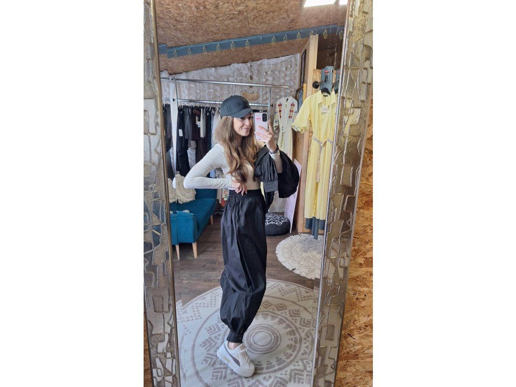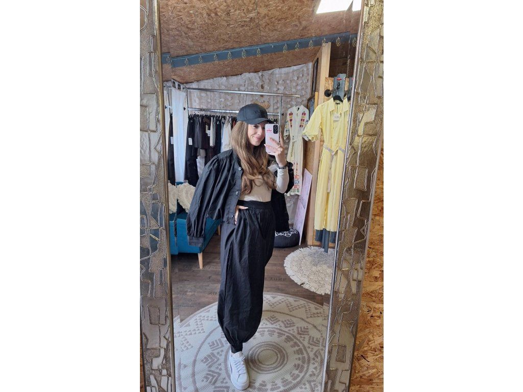 Kalhoty jsou zakončené manžetou s knoflíkem