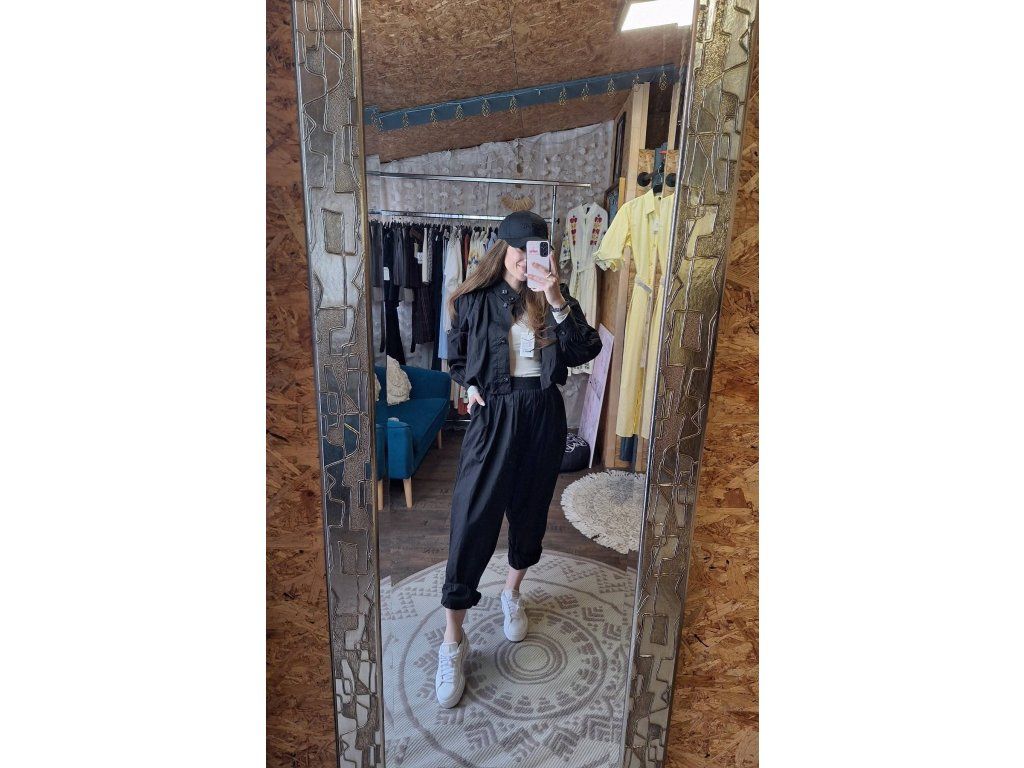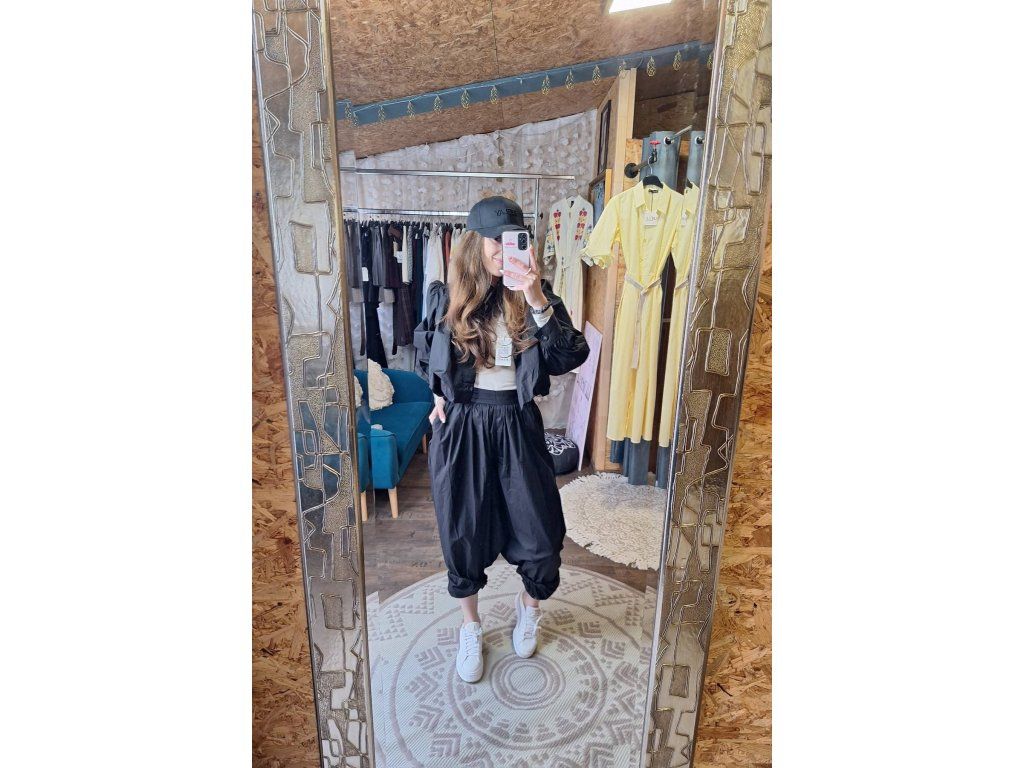 Pas 2x 32 - 49 cm; sed 36 cm; délka vnější 108 cm, délka vnitřní 72 cm, boky 2x 83 cm, šířka nohavice 49 cm