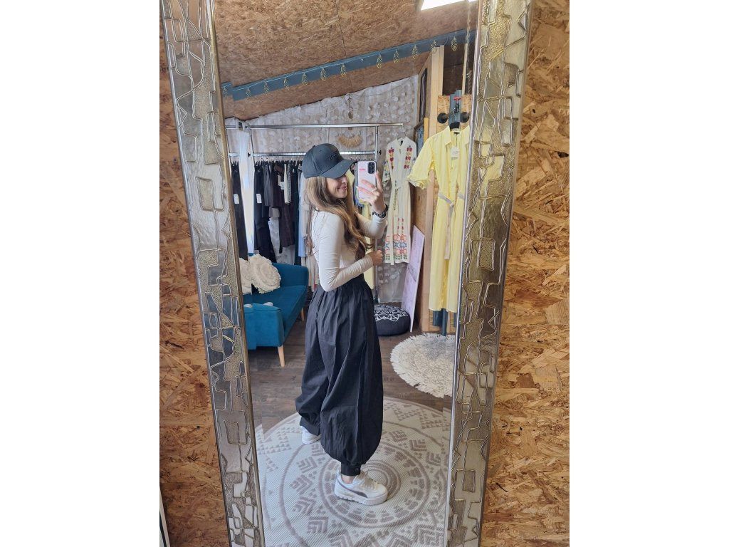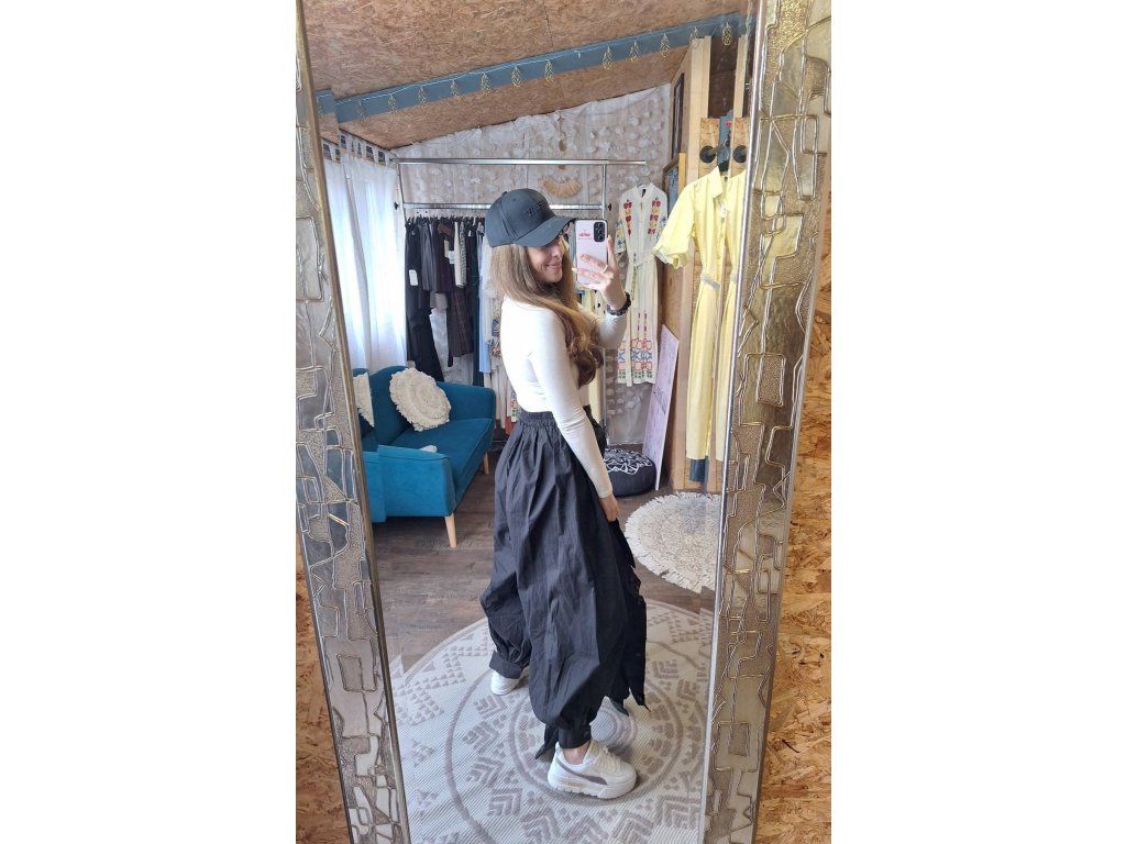 Pas 2x 32 - 43 cm; sed 35 cm; délka vnější 106 cm, délka vnitřní 72 cm, boky 2x 74 cm, šířka nohavice 49 cm