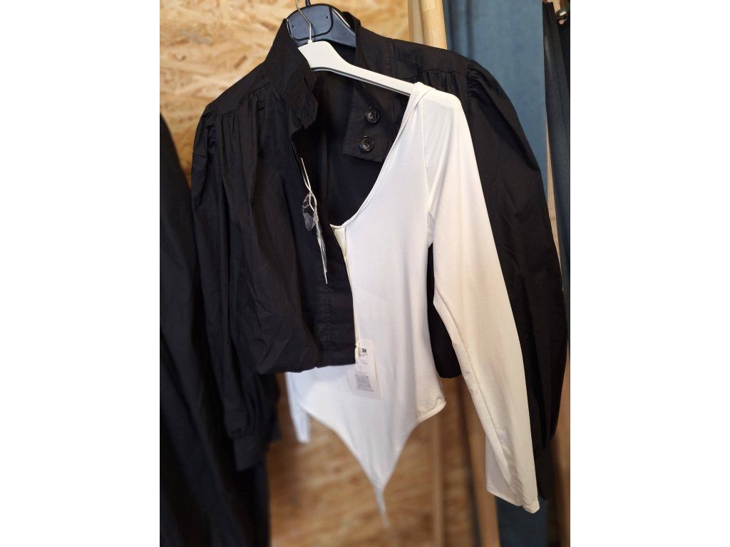 Prsa 2x 57 cm, přední délka 40 cm, zadní délka 47 cm, pas 65 cm, rukav 11 + 63 cm,