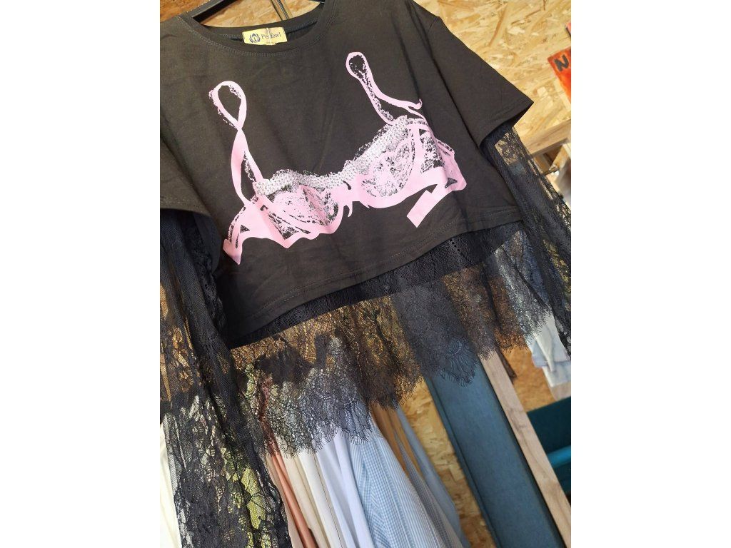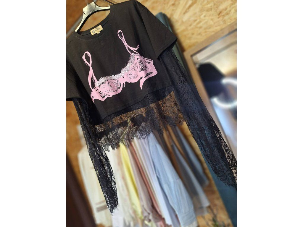 Top v černé s růžovým a kamínky