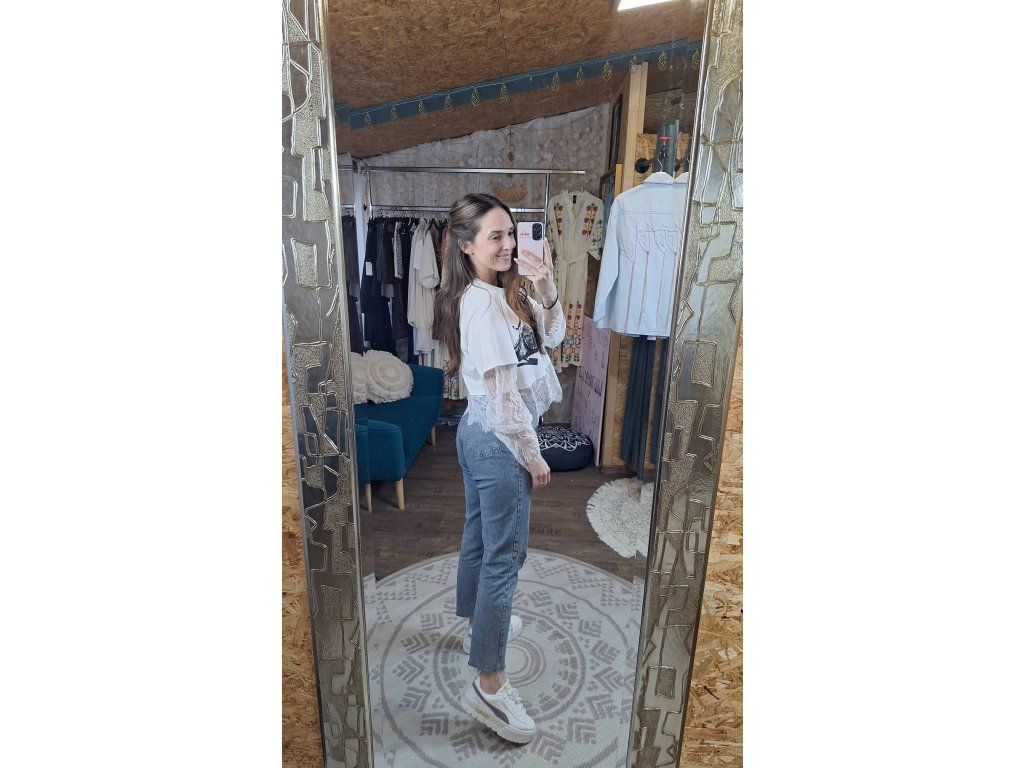 Krajkovy Rukáv je hodně dlouhý a zakončení - chce při nošení nahrnout:)